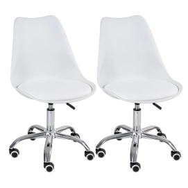 Kit 2 Cadeiras Tulipa para Escritório com rodízios e assento estofado – Branco
