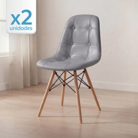 Kit 2 Cadeiras de jantar Charles Eames Eiffel Botonê Estofada - Cinza escuro
