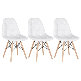 Kit 3 Cadeiras de jantar Charles Eames Eiffel Botonê Estofada – Branco