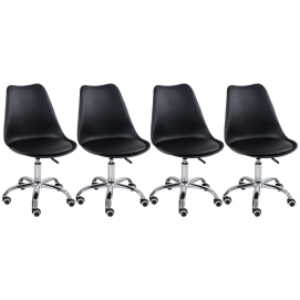 Kit 4 Cadeiras Tulipa para Escritório com rodízios e assento estofado – Preto