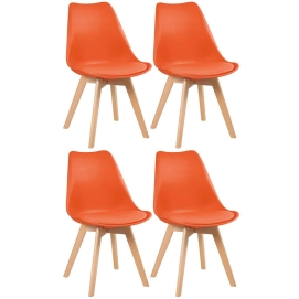 Kit 4 Cadeiras de jantar Leda com assento estofado e design moderno - Laranja
