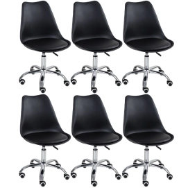 Kit 6 Cadeiras Tulipa para Escritório com rodízios e assento estofado – Preto