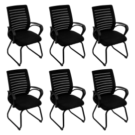 Kit 6 Cadeiras Office Escritório Base Fixa Viena, Preto
