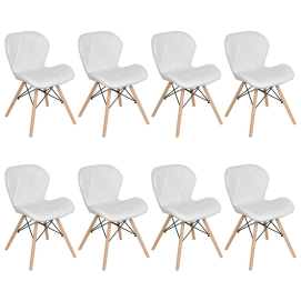 Kit 8 Cadeiras de jantar estofada Charles Eames Eiffel Slim Wood confort – Branco