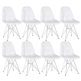 Kit 8 Cadeiras estofada Charles Eames Eiffel Botonê DKR com pés de metal cromado - Branco
