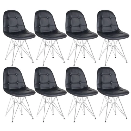 Kit 8 Cadeiras estofada Charles Eames Eiffel Botonê DKR com pés de metal cromado - Preto
