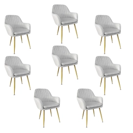 Kit 8 Cadeiras Poltrona Lines com pés dourados Suede