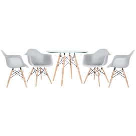 Kit - Mesa de vidro Eames 100 cm + 4 cadeiras Eiffel Daw cinza claro