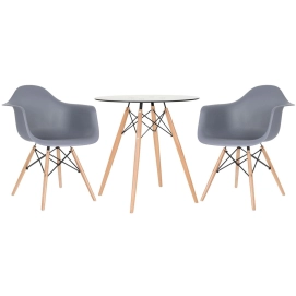 Kit Mesa de Vidro Eames 70 cm + 2 Cadeiras Eames DAW - Cinza escuro