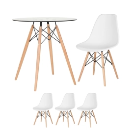 Kit - Mesa de vidro Eames 70 cm + 3 cadeiras Eiffel Dsw branco