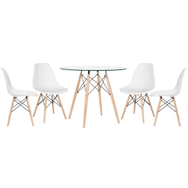 Kit Mesa de vidro Eames 90 cm + 4 cadeiras Eiffel DSW branco