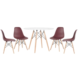 Kit - Mesa Eames 100 cm branco + 4 cadeiras Eames DSW marrom