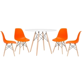 Kit - Mesa Eames 100 cm branco + 4 cadeiras Eames Eiffel Dsw laranja