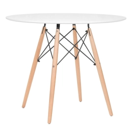 Cadeira Eames Botonê: Material do assento: Couro PU - Material da base: Madeira e aço - Altura do encosto: 82 cm - Altura do assento: 45 cm - Largura do assento: 44 cm - Profundidade do assento: 38 cm - Distância entre os pés: 40 cm - Peso suportado: 130 kg. MESA: Material do tampo: MDF laqueado (Laca fosca) - Material da base: Madeira e aço - Altura: 75 cm - Diâmetro: 90 cm - Garantia: 3 meses.