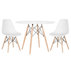 Kit - Mesa redonda Eames 100 cm branco + 2 cadeiras Eiffel Dsw Branco