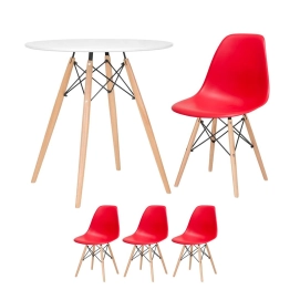 Kit - Mesa redonda Eames 70 cm branco + 3 cadeiras Eiffel Dsw Vermelho