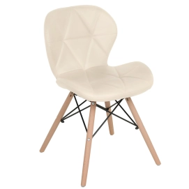Cadeira de jantar estofada Charles Eames Eiffel Slim Wood confort - Creme