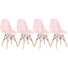 Kit 4 Cadeiras de jantar Charles Eames Eiffel Botonê Estofada - Rosa claro