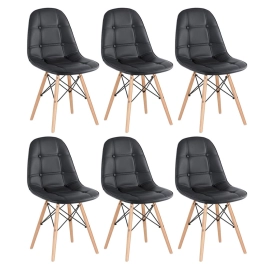 Kit 6 Cadeiras de jantar Charles Eames Eiffel Botonê Estofada - Preto