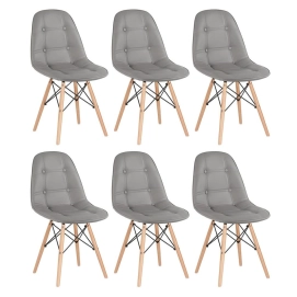 Kit 6 Cadeiras de jantar Charles Eames Eiffel Botonê Estofada - Cinza