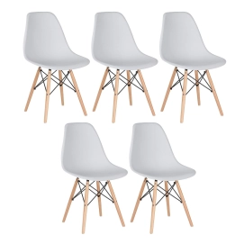 Kit 5 Cadeiras de jantar Charles Eames Eiffel DSW em Polipropileno - Cinza claro
