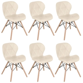Kit 6 Cadeiras de jantar estofada Charles Eames Eiffel Slim Wood confort – Creme