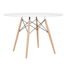 Mesa De Jantar Redonda Eames Eiffel Com Tampo De Mdf Laqueado E Base De Madeira E Aço 120 Cm Cozinha Sala De Jantar Bar Cafeteria, Branco