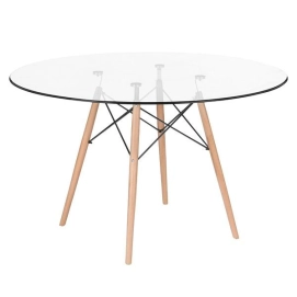 Mesa De Jantar Redonda Eames Eiffel Com Tampo De Vidro E Base De Madeira E Aço 120 Cm Cozinha Sala De Jantar Bar Cafeteria
