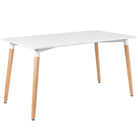 Mesa de jantar retangular: Material do tampo: MDF laqueado (Laca fosca) - Material dos pés: Madeira natural - Altura: 75 cm - Largura do tampo: 140 cm - Comprimento do tampo: 80 cm - Garantia: 3 meses.