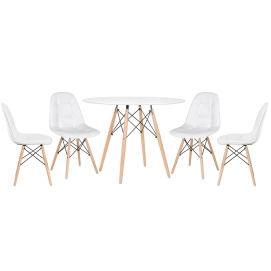 Mesa redonda Eames 100 cm + 4 cadeiras estofadas Eiffel Botonê