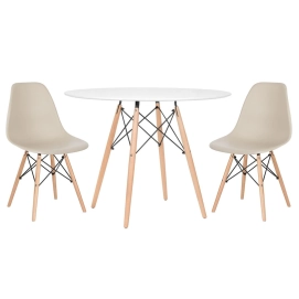 Mesa redonda Eames 100 cm branco + 2 cadeiras Eiffel Dsw