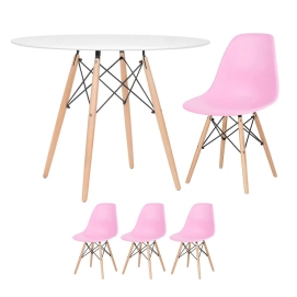 Mesa redonda Eames 100 cm branco + 3 cadeiras Eiffel DSW Rosa claro