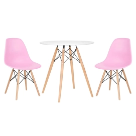 Mesa redonda Eames 70 cm + 2 cadeiras Eiffel DSW Mesa branco com cadeiras rosa claro - Características Gerais do Produto: Acompanha o produto: 1 - Mesa redonda Eames 70 cm 2 - Cadeiras Eiffel DSW Garantia: 90 dias