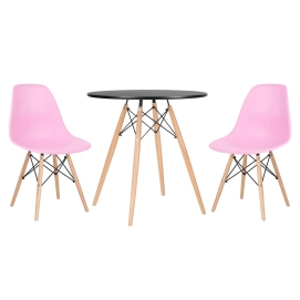 Mesa redonda Eames 70 cm + 2 cadeiras Eiffel DSW Mesa preto com cadeiras rosa claro - Características Gerais do Produto: Acompanha o produto: 1 - Mesa redonda Eames 70 cm 2 - Cadeiras Eiffel DSW Garantia: 90 dias