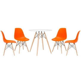 Mesa redonda Eames 70 cm + 4 cadeiras Eiffel DSW Mesa branco com cadeiras laranja - Características Gerais do Produto: Acompanha o produto: 1 - Mesa redonda Eames 70 cm 4 - Cadeiras Eiffel DSW Garantia: 90 dias