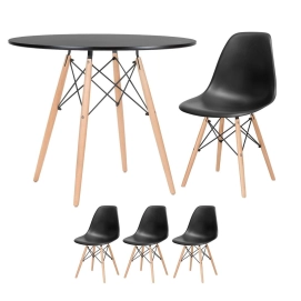 Mesa redonda Eames 90 cm + 3 cadeiras Eiffel DSW